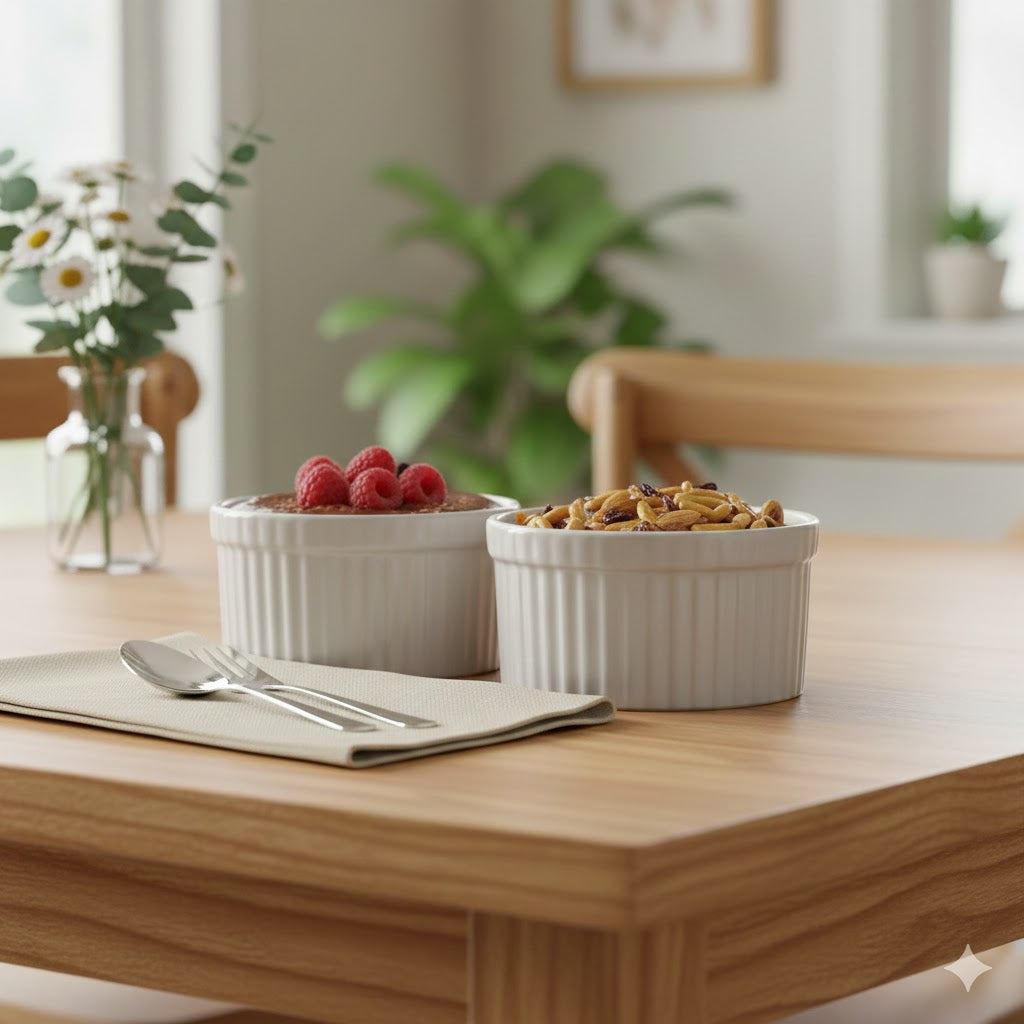Those who love their food, love their kitchen will definitely love this modern approach to pudding and ramekins bowls. Serve your guests in this after meal and get the sparkling appreciation for your fine hospitality. Tip to bottom is 100% handmade with fine details. Ramekins bowls used for pudding, custards, sweets, brownies, etc.