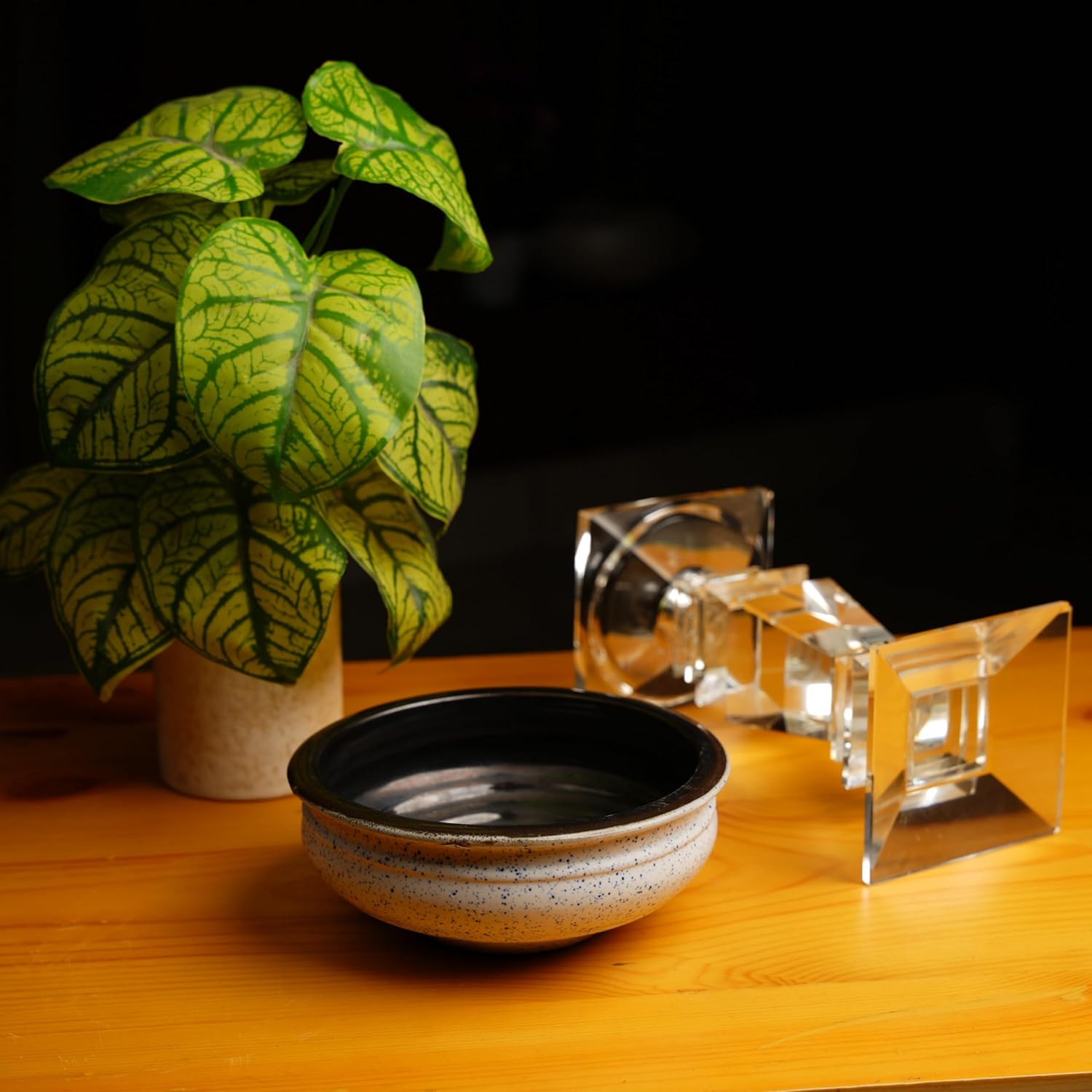 Caffeine Ceramic Handmade Grey & Brown Studio Serving Bowl 6 inch (Set of 1)