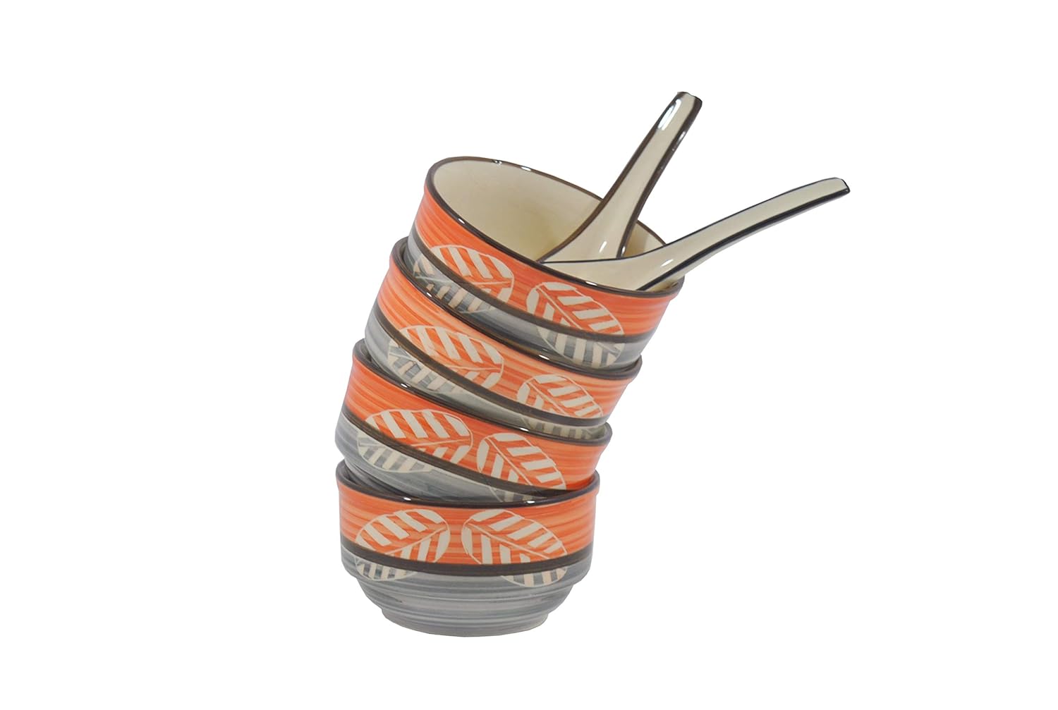 Caffeine Ceramic Handmade Orange Leaf Dinner Set (19 pcs.)