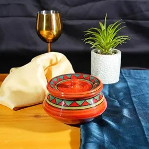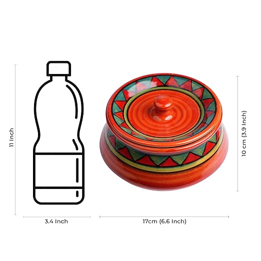 Caffeine ceramic handmade Handi with lid. These are suitable for serving veggies, rice dishes, and many more. All colors used on our dinnerware are food-safe. Craft: Stoneware. Not suitable for direct burner. Only use indirect sources of heat. Please do not put it in a preheated oven/microwave. Do not freeze at high freezing temperatures.