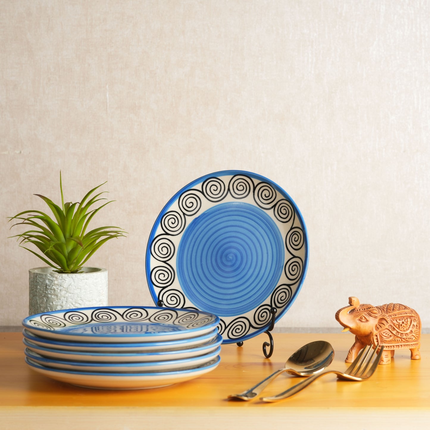 Caffeine Ceramic Handmade Stoneware Blue Doodle Quarter Plate 7”(Set of 4 Dishwasher & Microwave Safe )