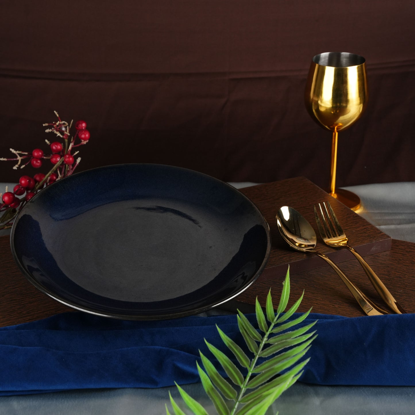 Caffeine Ceramic Handmade Stoneware Blue Metallic Quarter plate 7”(Set of 4 Dishwasher & Microwave Safe )