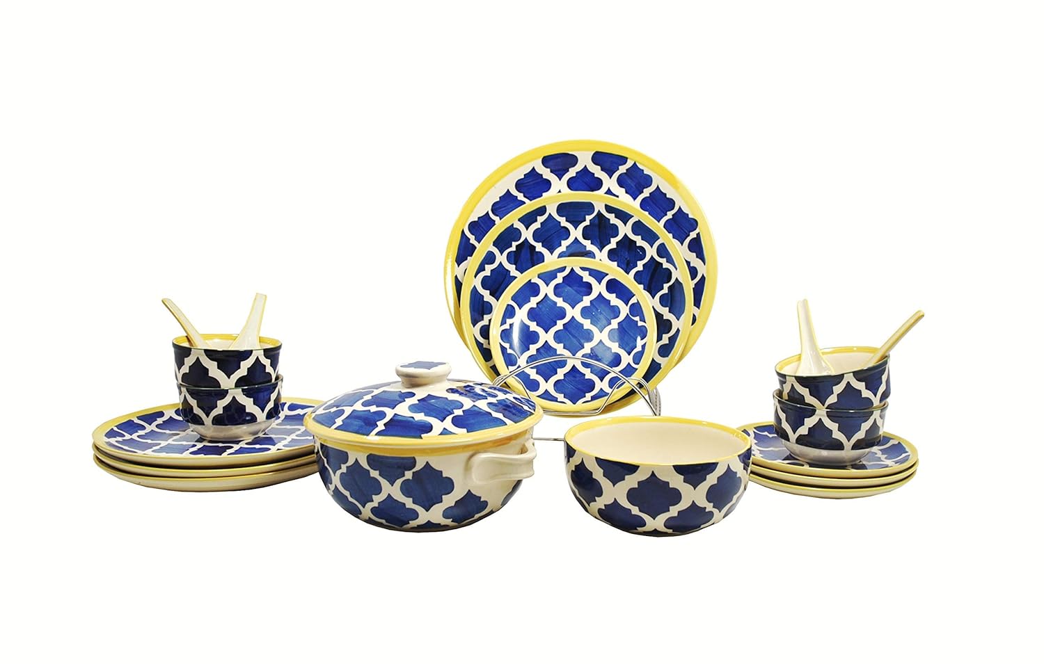 Caffeine Ceramic Handmade Stoneware Blue Umrao Dinner Set (19 pcs)