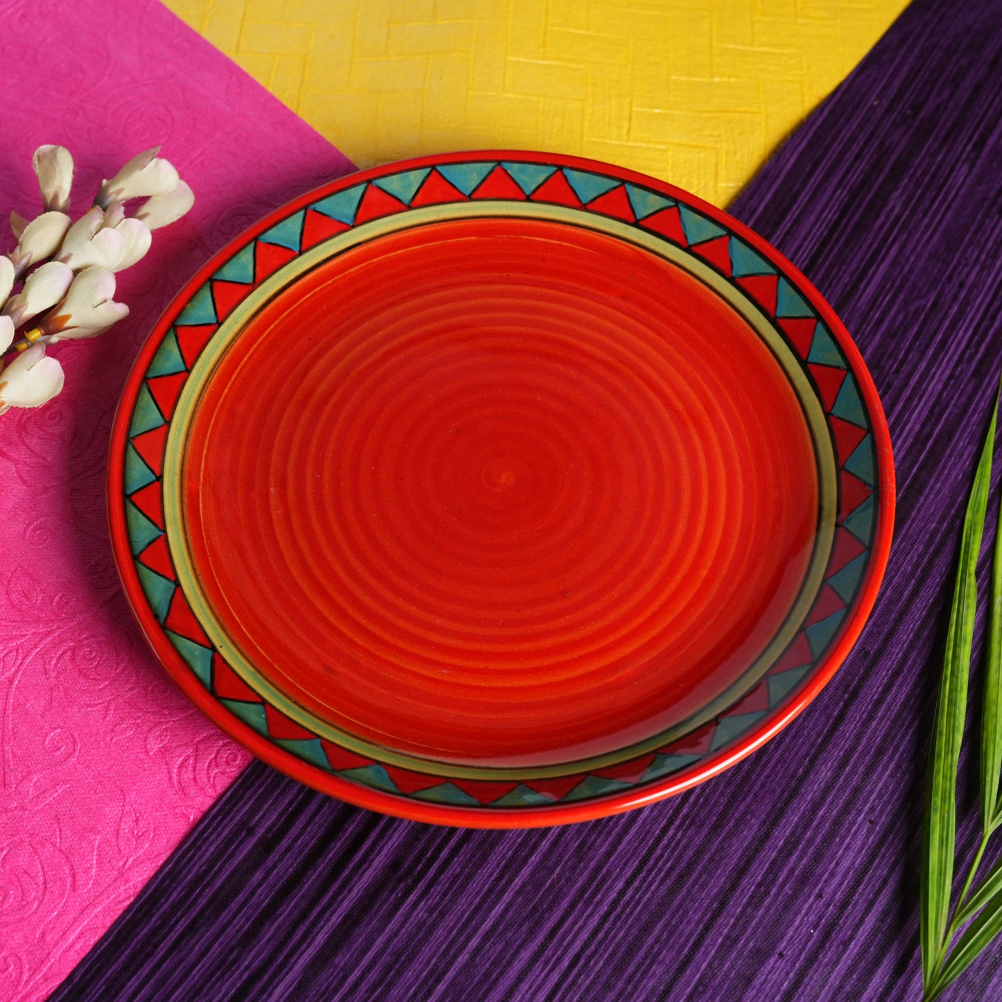 Caffeine Ceramic Handmade Stoneware Quarter Plate 7” (Set of 4) Microwave & Dishwasher Safe. These are piece of Handmade Artwork beauty from core of stoneware to enhance your dining and serving. These plates can be used as main buffet plates, side platter plates, snack plates or serving plates. Beautiful combination of durable and presentable products. Round Plates is more like the choice of artistic yet modern taste as well as a tribute to rural and urban combination.