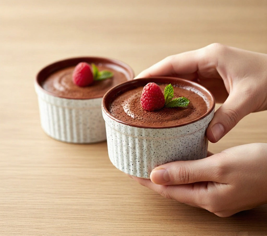 Caffeine Ceramic Handmade ramekins Bowl. This is a perfect product of modern handmade art at the same time elegant piece of ceramic works. This is a cute combination bowl with perfect matte finish on the outside and glossy finish inside. This is beauty of hand art in the field of product, enough to highlight your serving and give your dining an elite and sweet touch. Those who love their food, love their kitchen will definitely love this modern approach to pudding and ramekins bowls. Serve your guests in this after meal and get the sparkling appreciation for your fine hospitality. Tip to bottom is 100% handmade with fine details. Ramekins bowls used for pudding, custards, sweets, brownies, etc