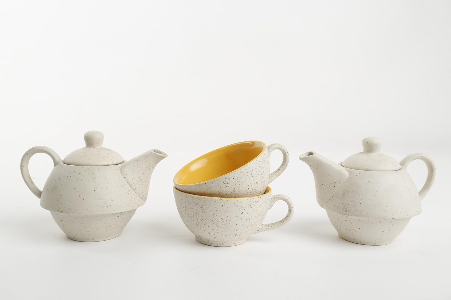 Caffeine Ceramic Handmade White Matte & Mustard 2 in1 Tea Pot (Set of 2, Kettle with Cup)