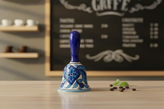 Caffeine Ceramic Handmade Dinner Bell. Notes: Set of 1 . These are an addition to your dinners capes, conventional yet fancy. DESIGN: Flora. this design intrinsically hand painted on the Bell by artisans. All colors and glaze used on our Dinnerware are food safe as it’s protected by Eco glaze. CRAFT: Vitrified Stoneware that does not absorbs moisture, is more hygienic and has better heat retention properties.