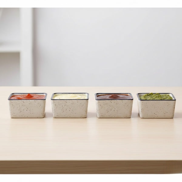 Caffeine Ceramic Handmade Rectangular Dip Bowl. These are suitable for serving all delicious sauces and cheese. All colors used on our dinnerware are food safe. Craft: Stoneware. Microwave safe. Not suitable for direct burner.